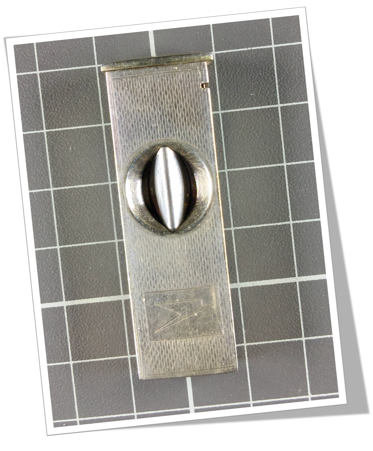 Coupe-Cigare de poche En métal argentém et de forme rectangulaire. Faces rehaussées d’un guillochis «linéaire», agrémenté au recto du sigle de la BOAC.Cat-Eye (V-Cat) à collerette.