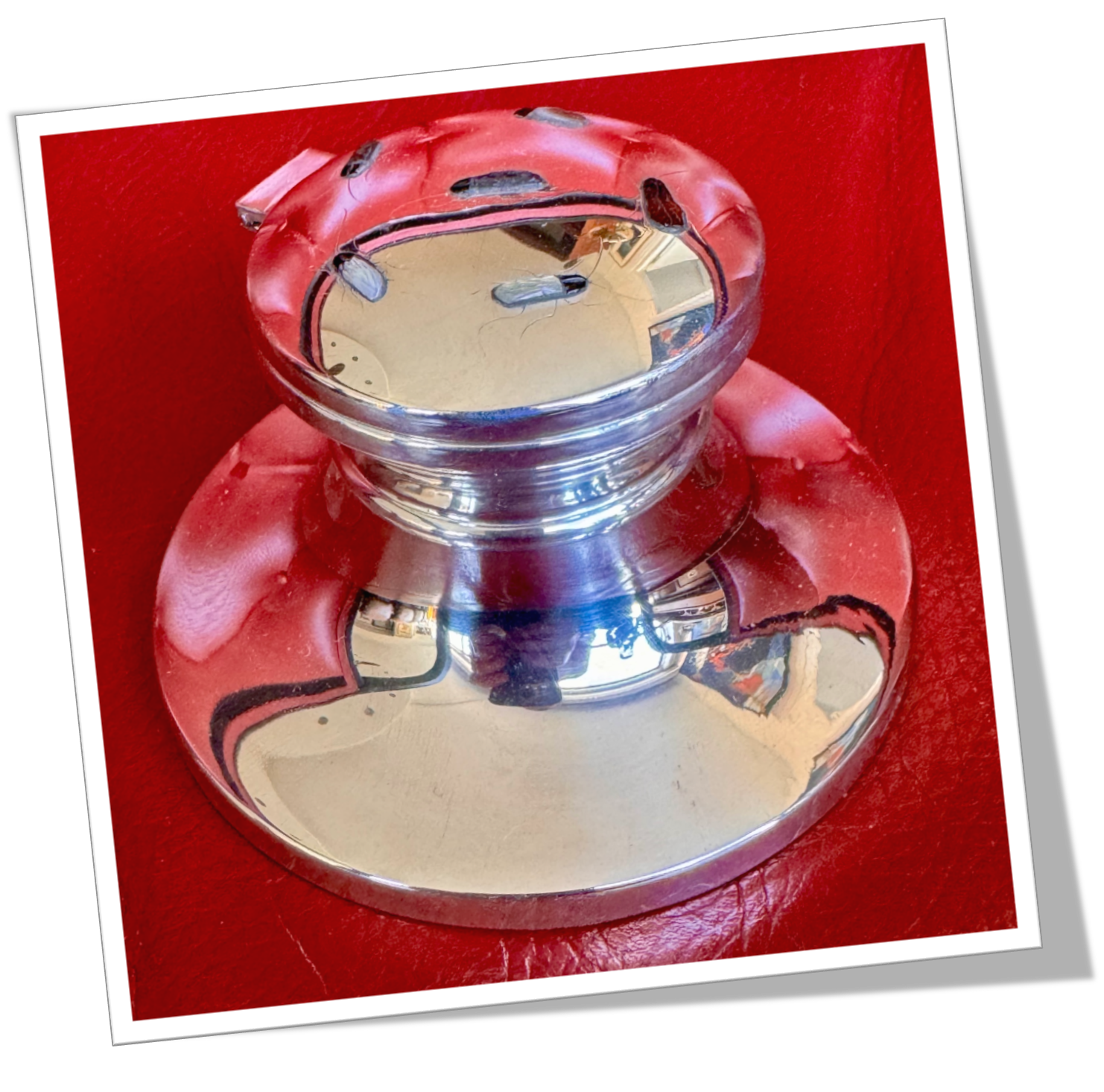 Sa structure intégrale en argent, sans verre. Le style Shibayama pour cet objet.