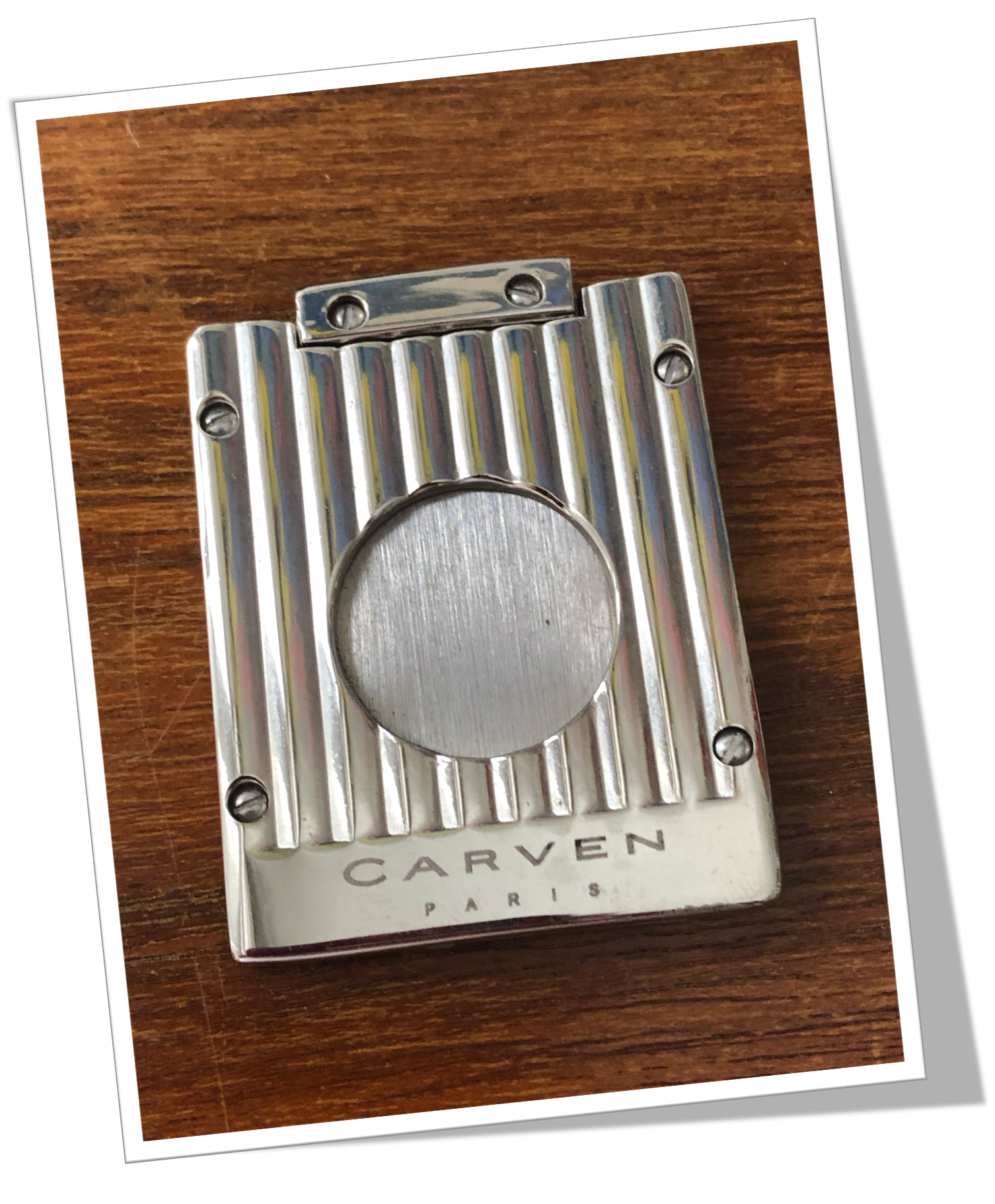 Coupe-Cigare de poche Côtes carrées vissées en métal argenté, rehaussées d’un guillochis « godronné » agrémenté d’un liseré bas.Guillotine à collerette.