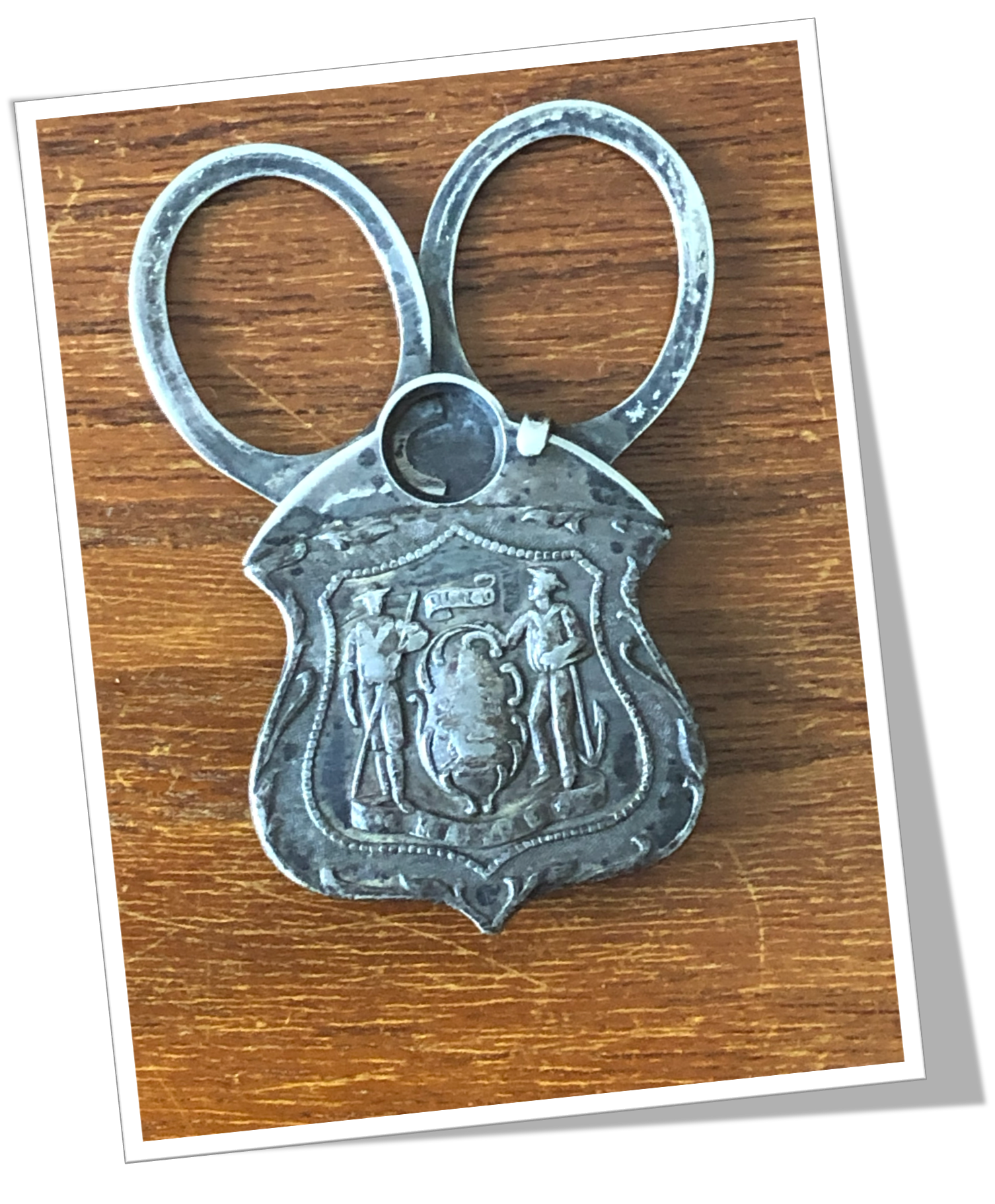 Coupe-Cigare de poche En forme de bouclier en argent 925. Côte appliquée au recto et qui dissimule le mécanisme. Sécateur. Double prises en deux anneaux. Total: 5cm.