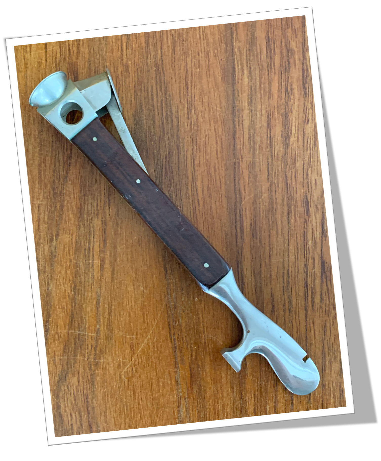 Coupe-Cigare de table Côtes rivetées en bois foncé.En acier chromé. Manche long agrémenté d’un « pied de biche » marteau et d’une tête transition, de type Cut-Eye (V-Cut) + Straight-Cut. 16cm.
