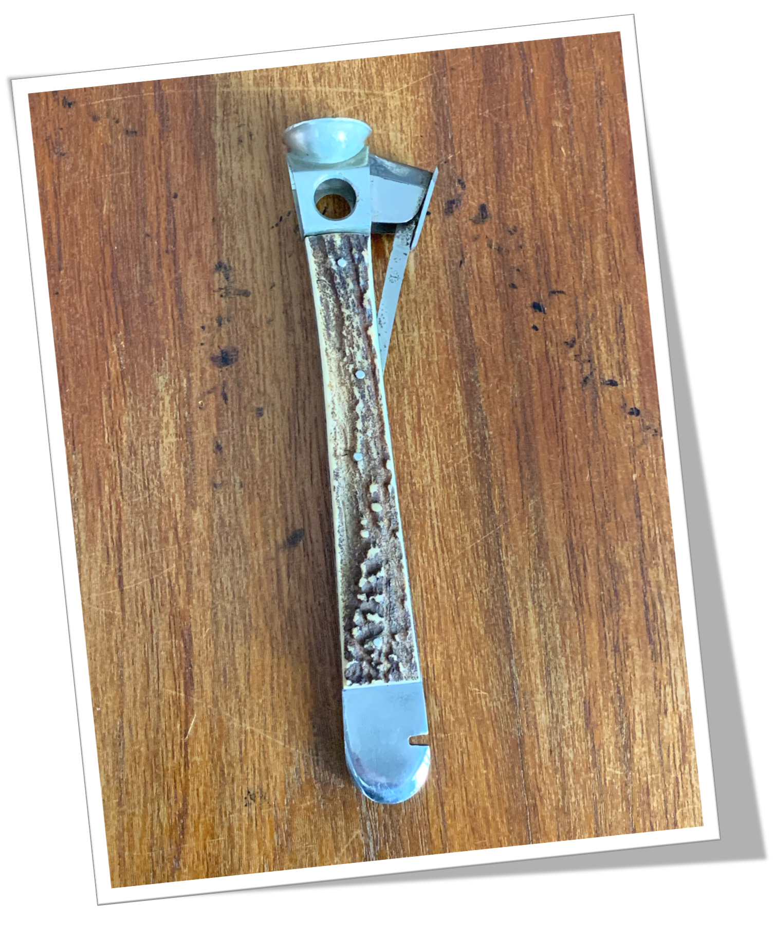Coupe-Cigare de table Côtes rivetées en bois de cerf.En acier chromé. Manche long agrémenté d’un « pied de biche » et d’une tête transition, de type Cut-Eye (V-Cut) + Straight-Cut. 13cm.