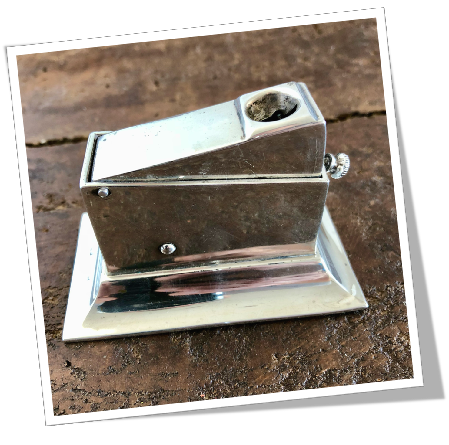 Coupe-Cigare de table En argent 925 lisse poli miroir et de forme rectangulaire. Agrémenté sur le côté du monogramme « Remember » et d’une licorne.Cat-Eye (V-Cat) à pression.