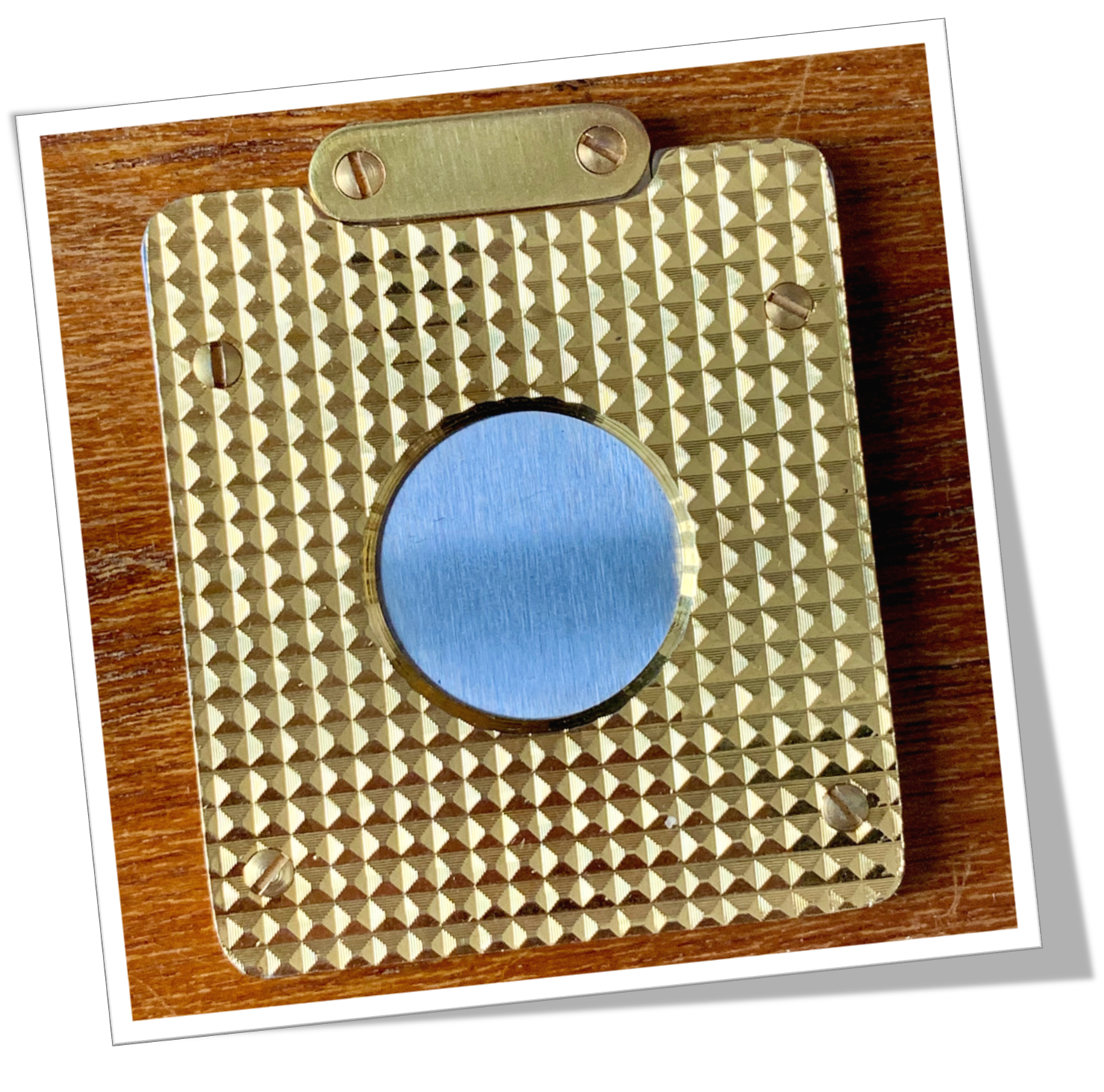 Coupe-Cigare de poche Côtes carrées rivetées en métal doré plaqué or, rehaussées d’un gaufrage « gros diamant ».Guillotine à collerette.