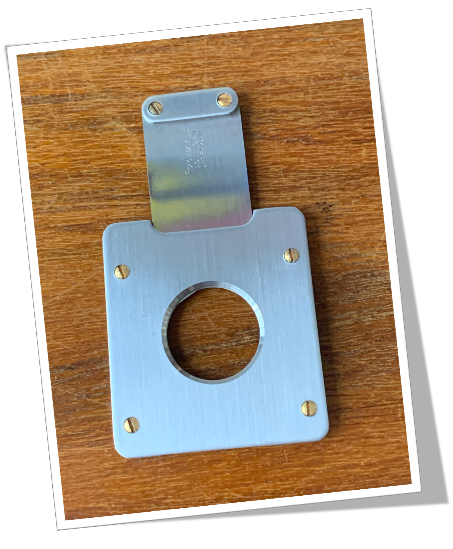 Coupe-Cigare de poche Côtes carrées vissées en acier satiné, agrémentées de visses dorées. Guillotine à collerette.