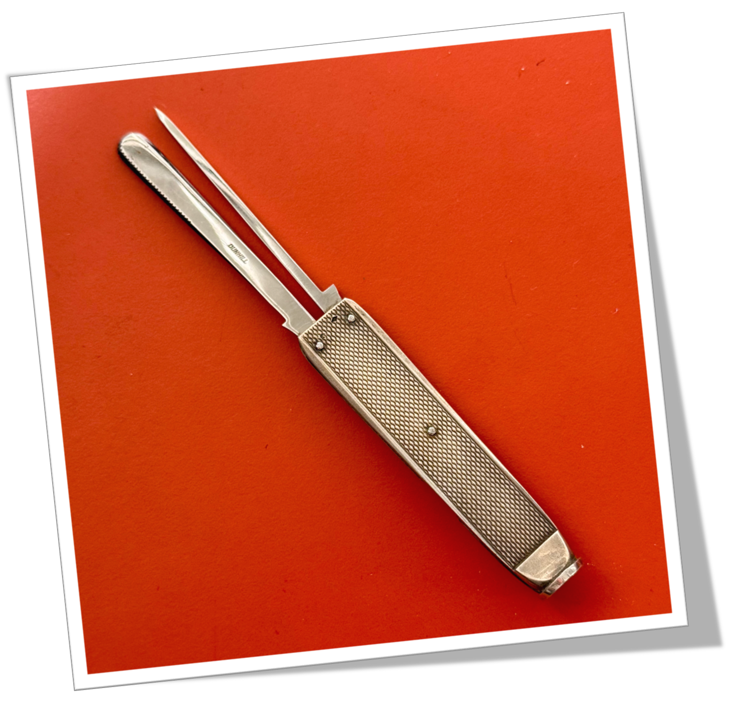 Nécessaire fumeur de pipe Côtes rivetées en argent 925, rehaussées d’un guillochis « linéaire » agrémenté d’un liseré.2pcs+: Grattoir dentelé, pique + Bourre-Pipe tampon en bout de manche.