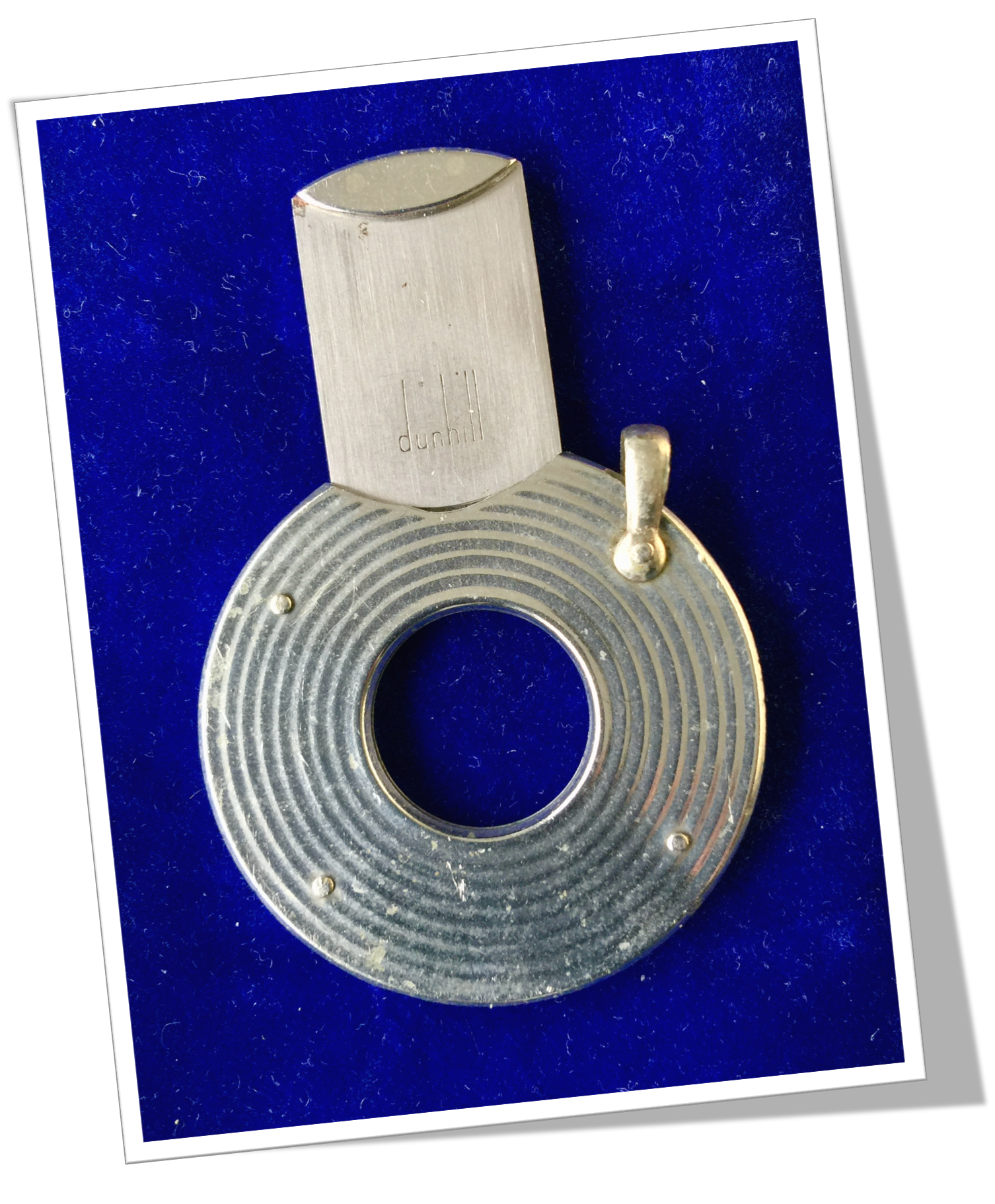 Coupe-Cigare de poche Côtes circulaires rivetées en acier chromé, rehaussées d’un guillochis « sillons ».Guillotine à tirette. Bélière latérale.