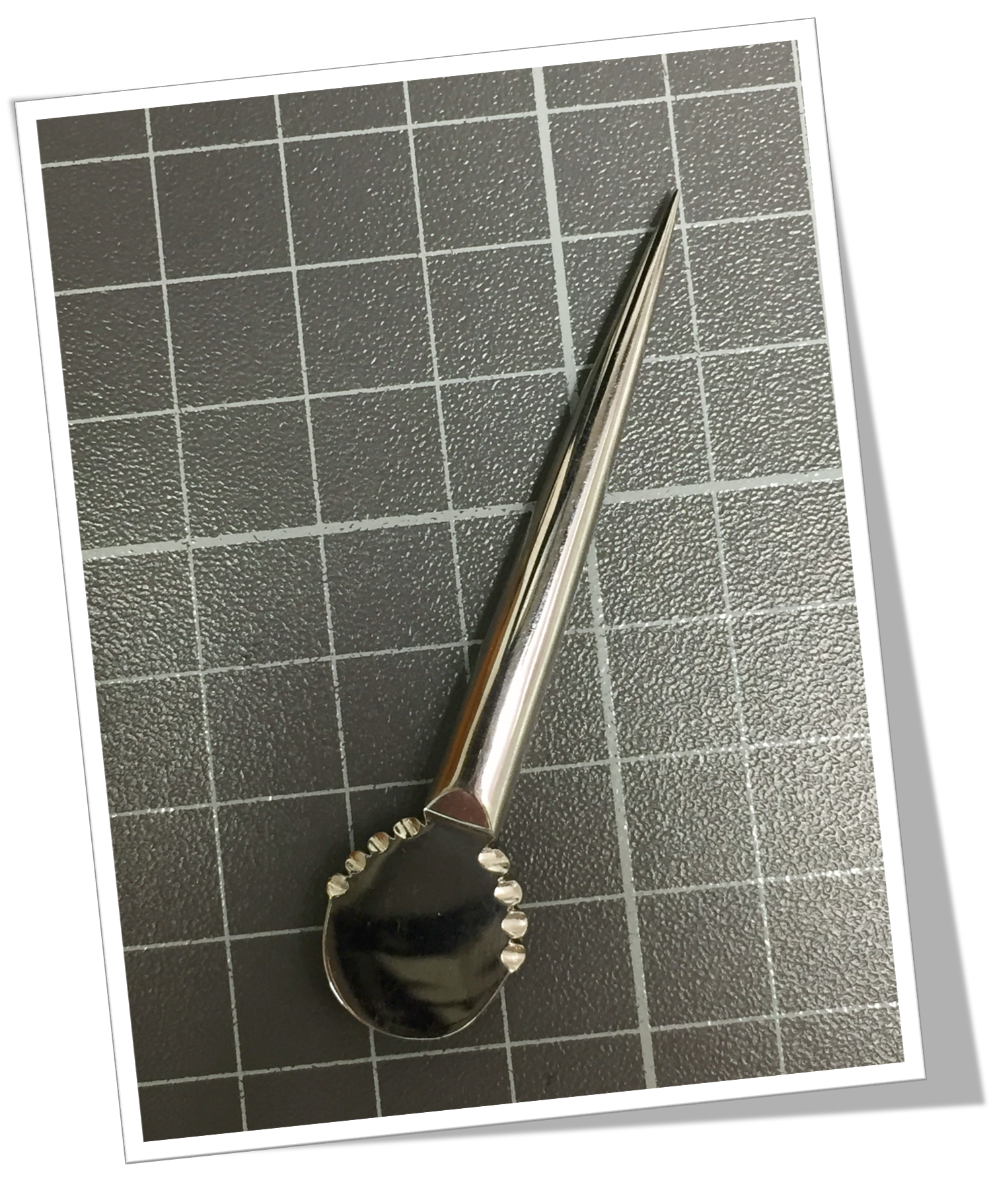 Perce-cuir Manche en acier chromé lisse poli miroir. Tête dentelée.Pique.