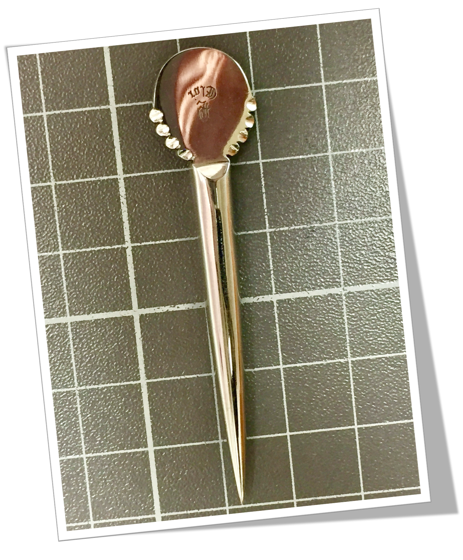 Perce-cuir Manche en acier chromé lisse poli miroir. Tête dentelée.Pique.