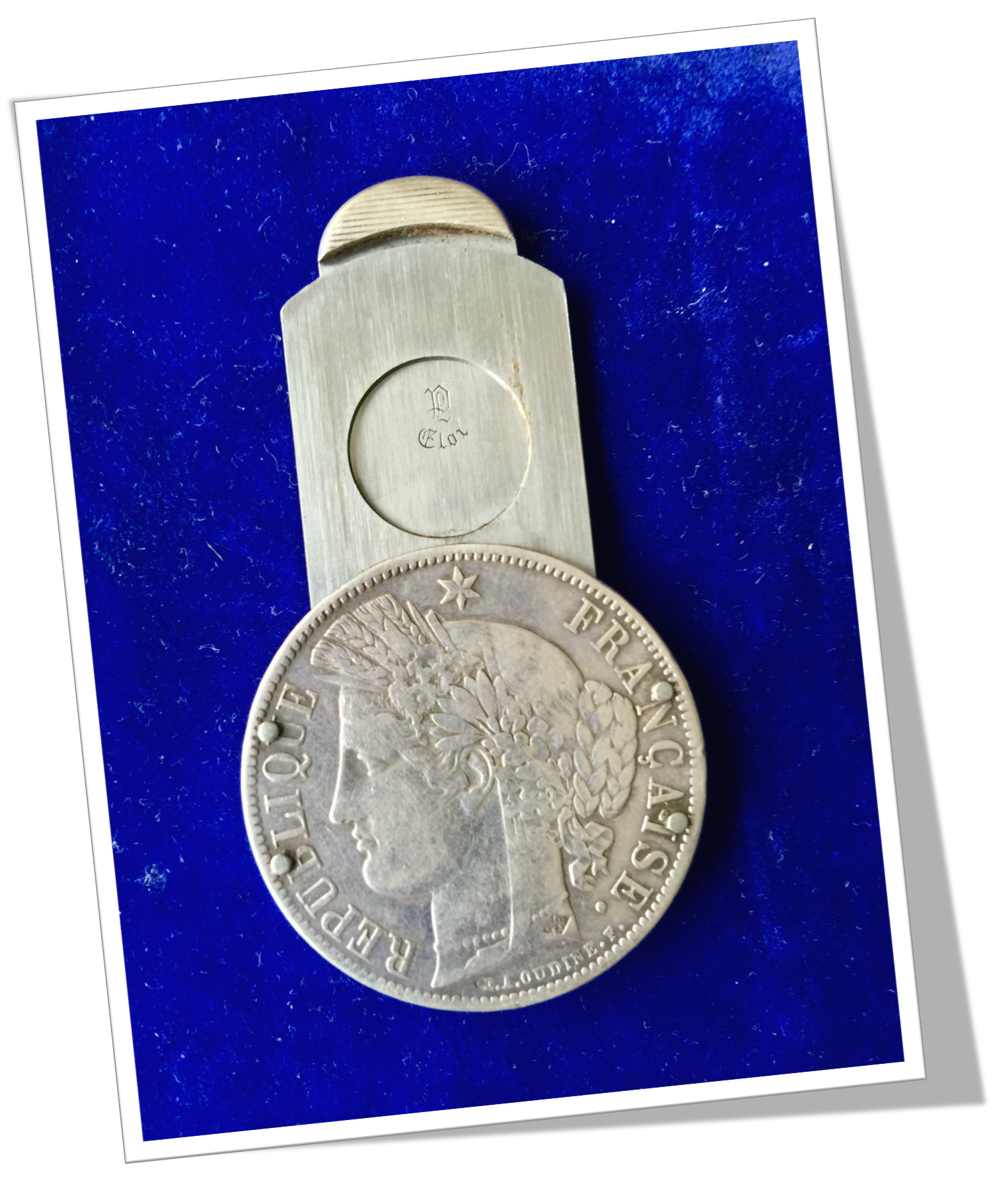 Coupe-Cigare de poche Écu en argent 900, tranché et riveté. Cérès, France 1870. Guillotine secrète à collerette.