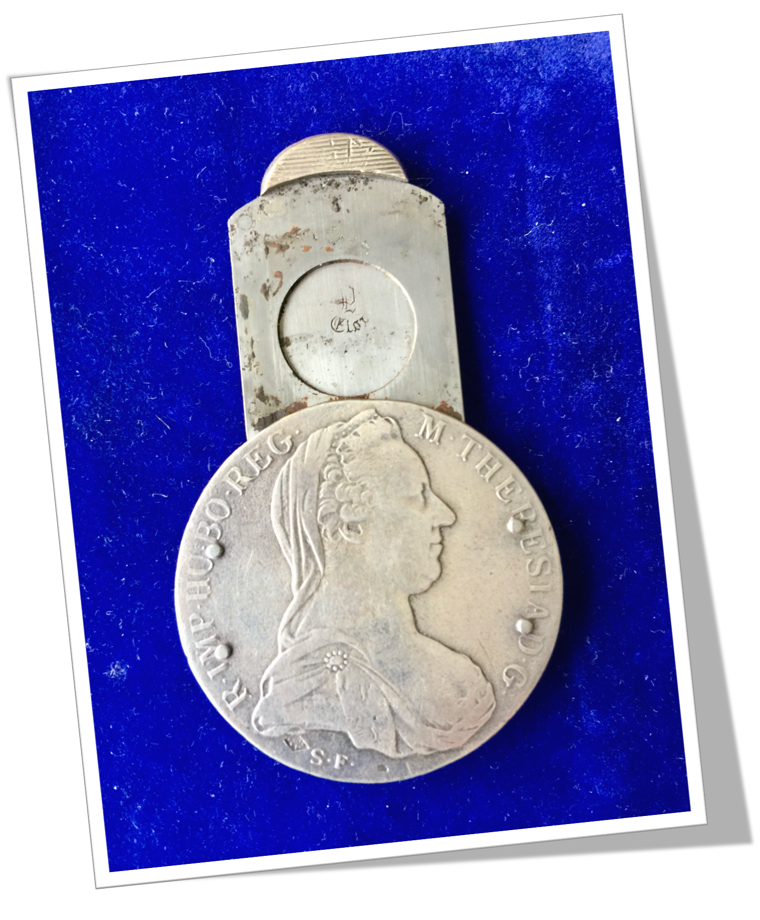 Pièce en argent 900, tranché et riveté. Marie Thérèse, Autriche 1780.