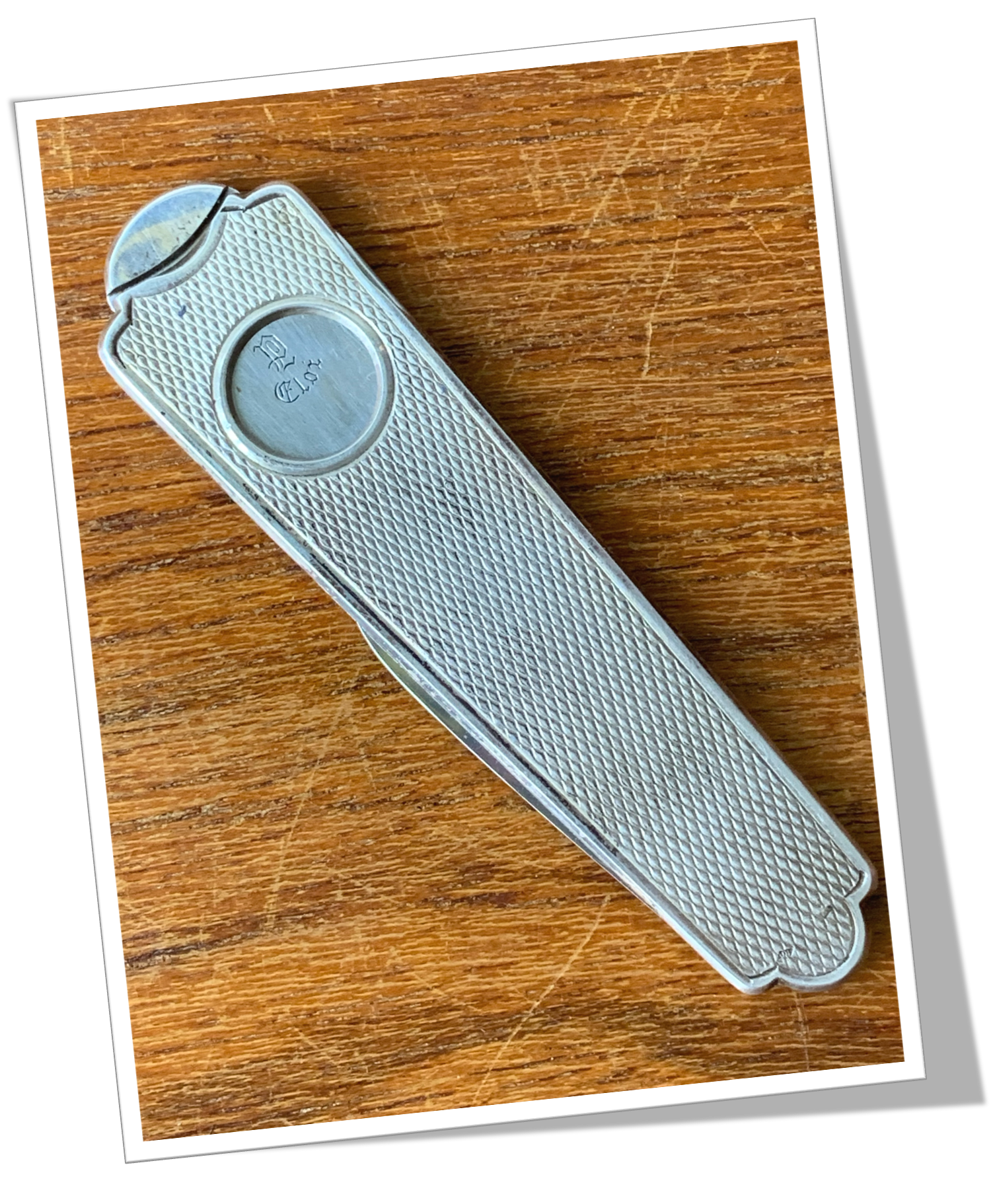 Coupe-Cigare de poche Côtes « obélisque » rivetées en argent 925, rehaussées d’un guillochis « linéaire », agrémenté d’un liseré.Guillotine à collerette +2 rétractables: Lame et pique-poinçon.