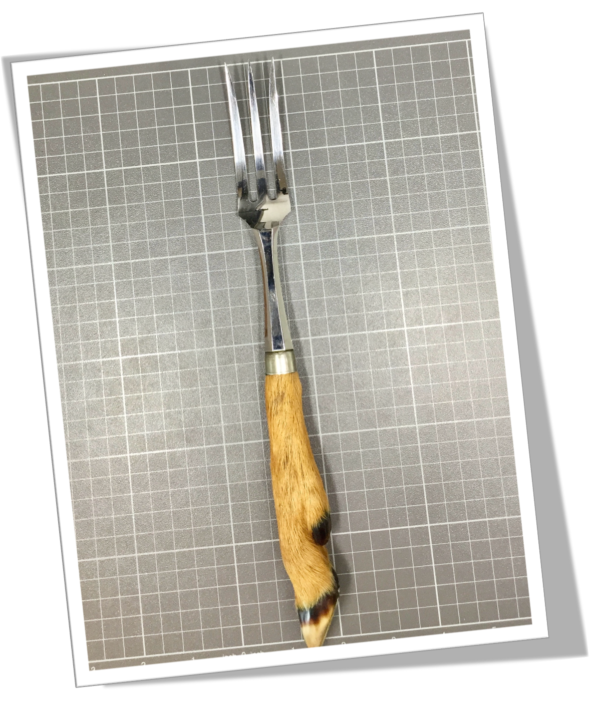Couverts de service Manche en patte de biche. Thème de la chasse.Couteau et fourchette.