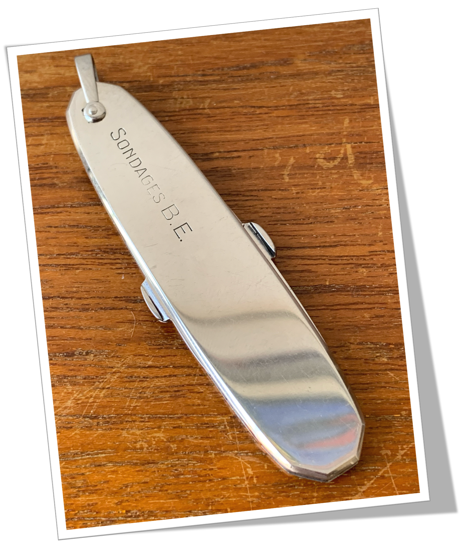 Couteau canif Manche à côtes octogonales en acier brossé appliquées.3pcs: Lame, lime et ciseaux. Bélière. 12cm.