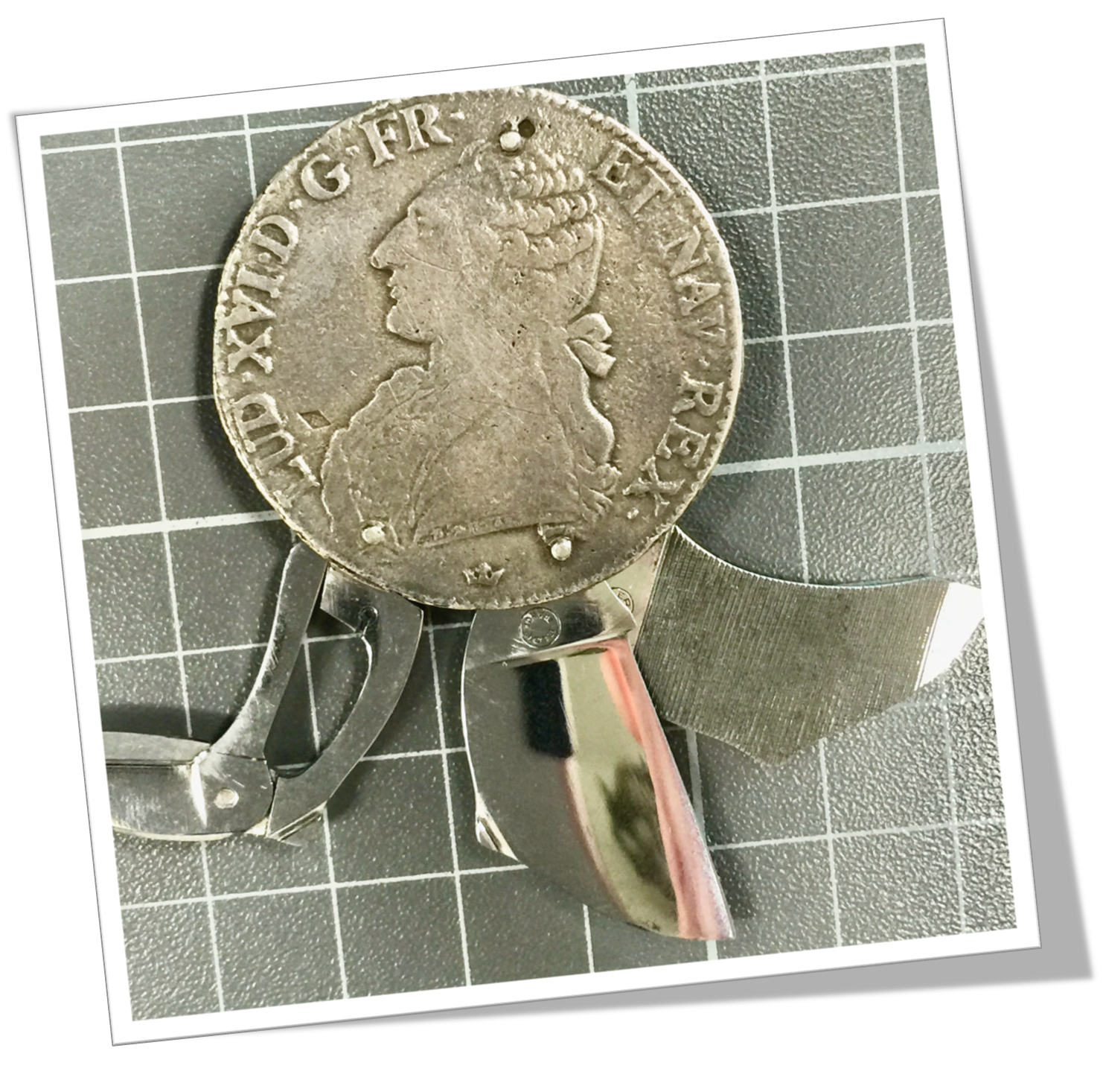 Écu en argent 900, tranché et riveté. Louis XVI, France 1791.