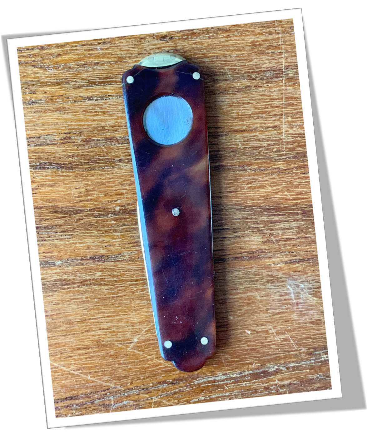 Coupe-Cigare de poche Côtes « obélisque » rivetées en écaille de tortue.Guillotine à collerette +2 rétractables: Lame et pique-poinçon.