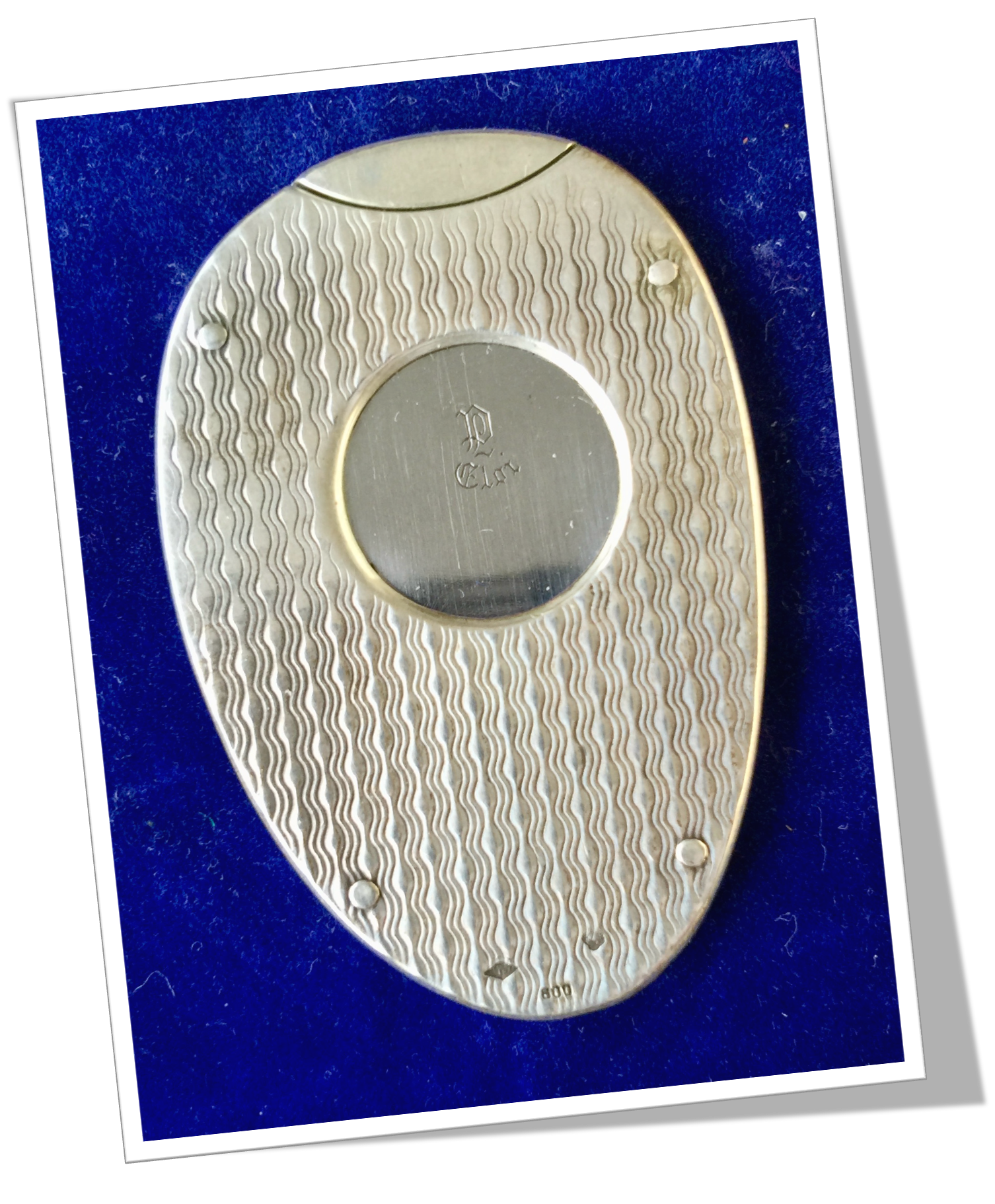 Coupe-Cigare de poche Côtes ovoïdes rivetées en argent 925, rehaussées d’un guillochis « cinétique ruisselant ». Guillotine à tirette.
