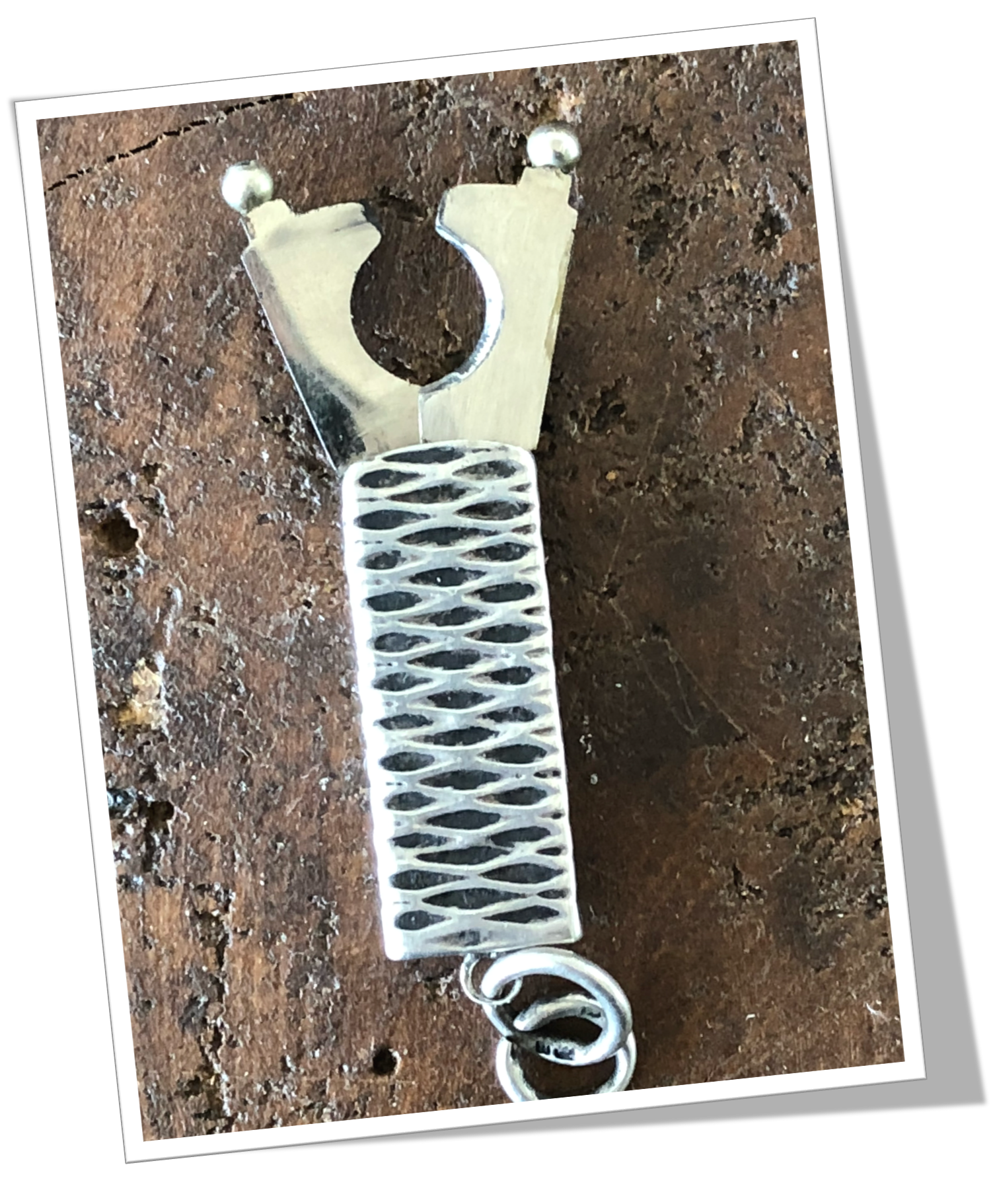 Coupe-Cigare de poche En argent 925 et de forme rectangulaire. Faces rehaussées d’un guillochis « zigzag tressé ».Cisaille extractible. Anneau soudé agrémenté d’une bélière en argent.