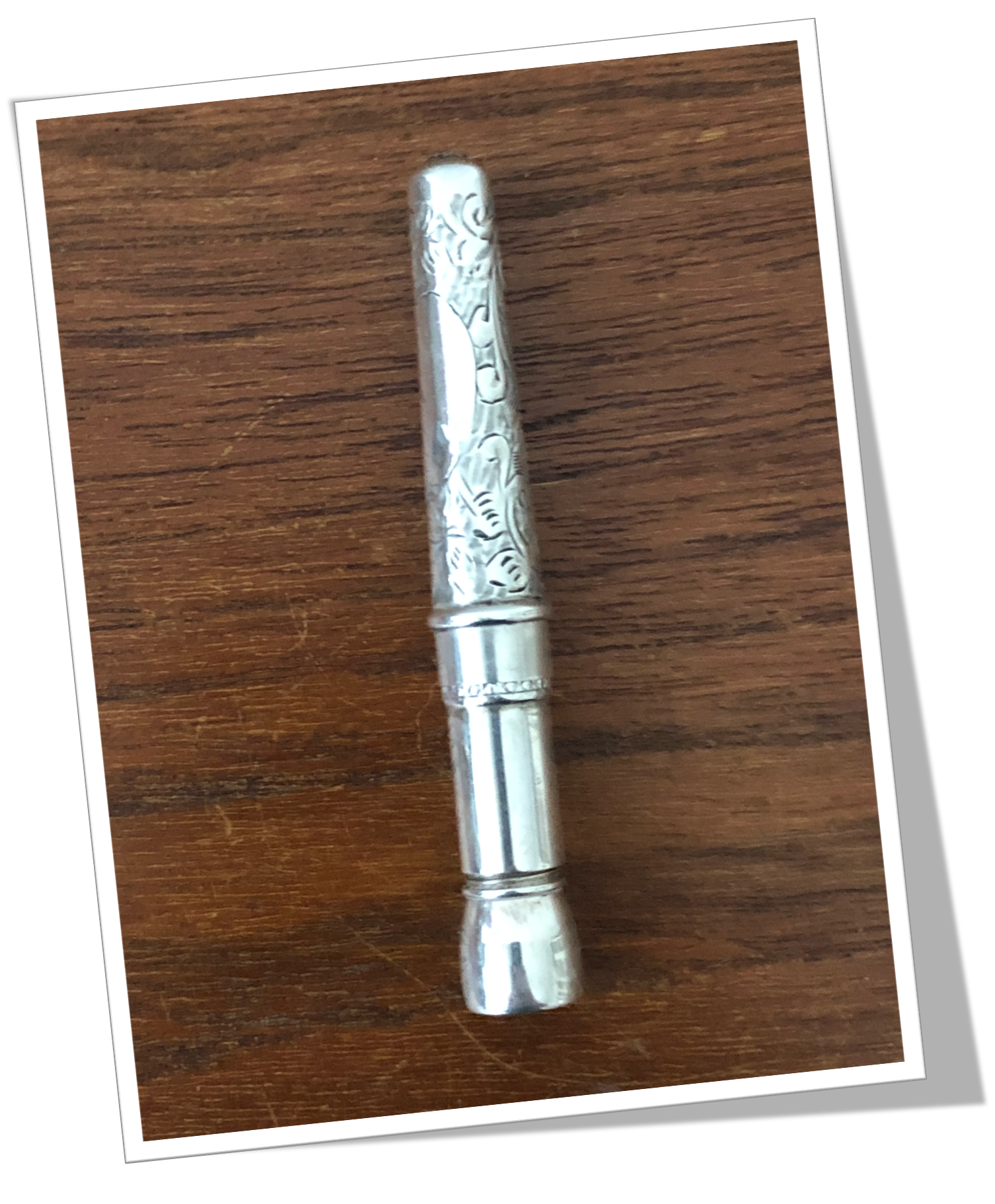 Perce-Cigare de poche En argent 925 et en forme de trompe, rehaussé d’un de ciselures de style Art Nouveau.Pique à ressort.