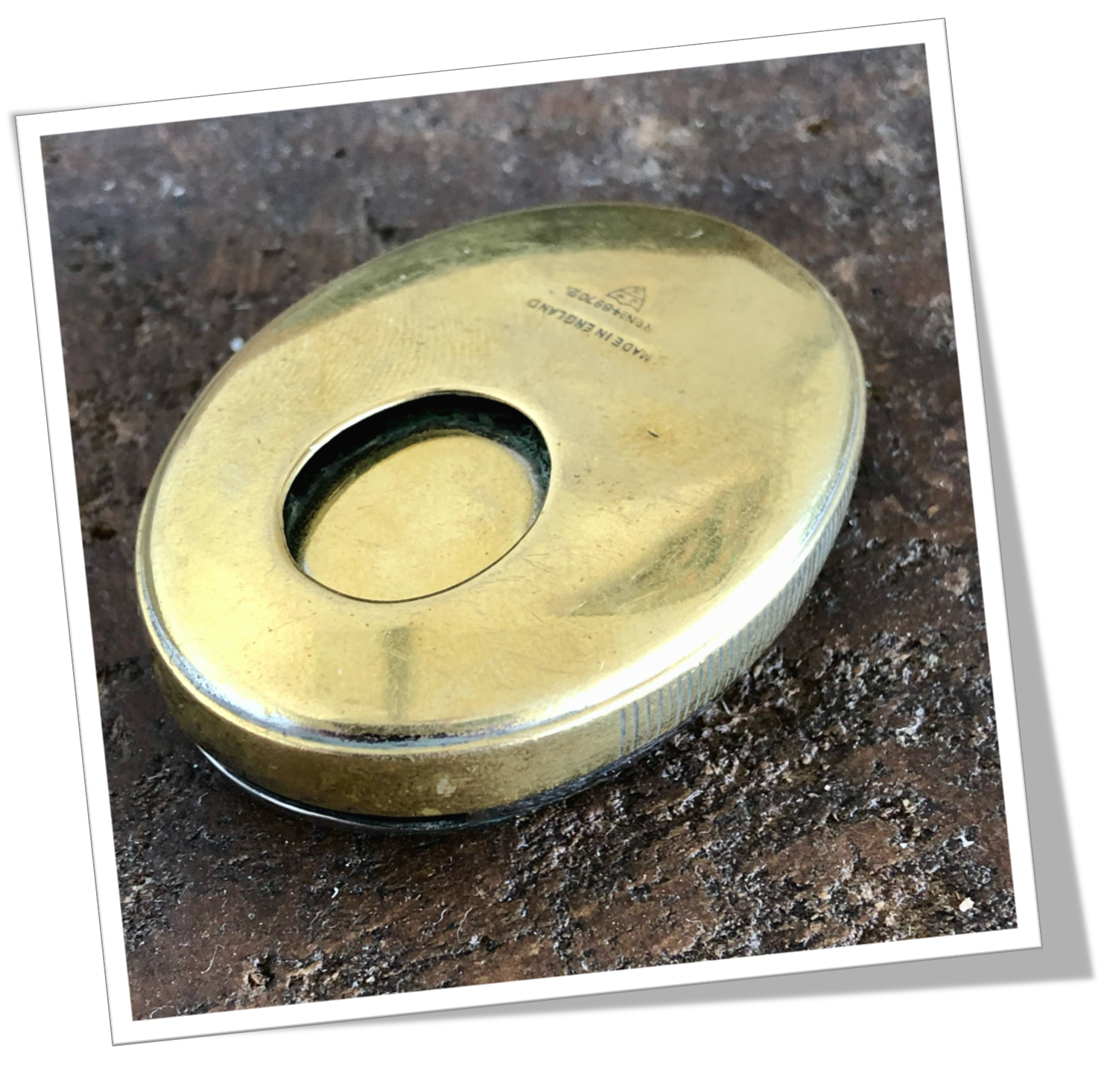 Pyrogène Vesta Case En laiton. De forme ovale. Lisse.Ouverture par entrebâillement. Grattoir latéral plat.