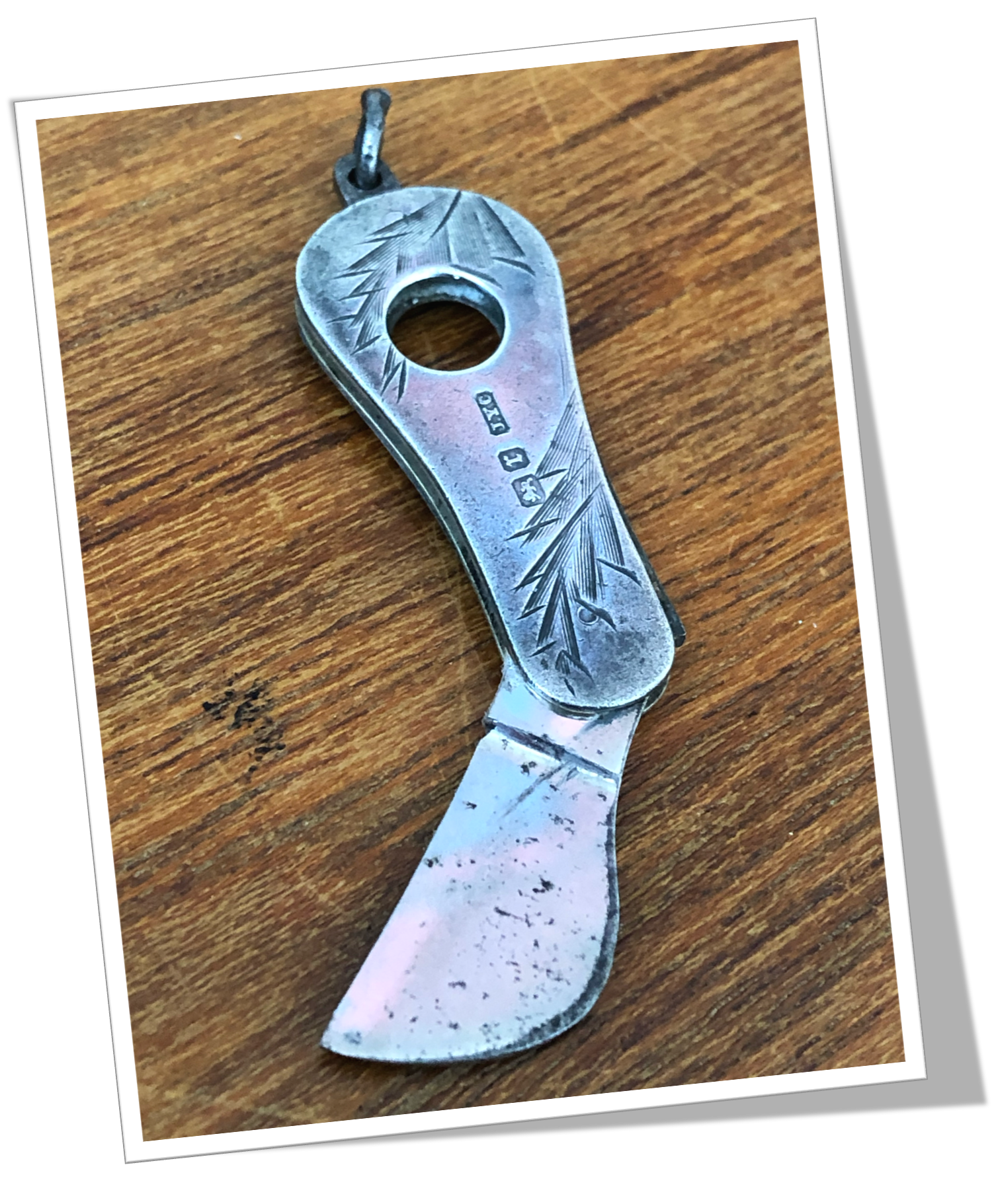 Coupe-Cigare de poche Corne d’abondance à côtes rivetées en argent 925. Feuillage et fleurs ciselés. Anneau soudé.Lame guillotine à ressort. Bélière.