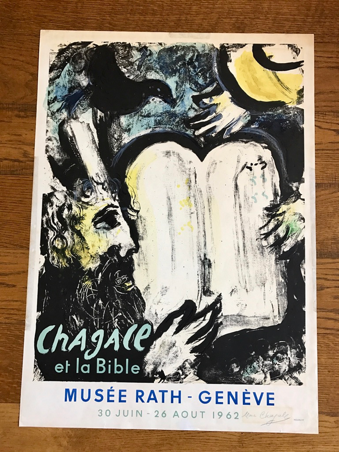 Moïse et les tables de la loi Chagall et la bibleChagall et la bible Musée Rath, Genève 30 juin - 26 Août 1962Musée Rath, Genève 30 juin - 26 Août 1962 1000 épreuves sur papier 75,5 x 54 cm1000 épreuves sur papier 75,5 x 54 cm (Sorlier 43)