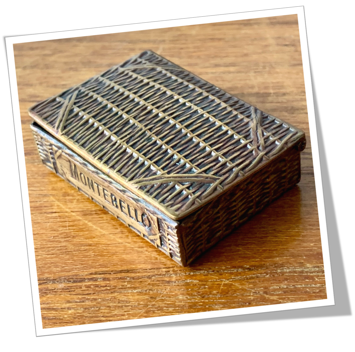 Pyrogène Vesta Case En laiton, moulé et texturé en forme de caisse de champagne en osier. Tressé façon panier, osier.Capot ressort à zéro. Grattoir plat latéral.