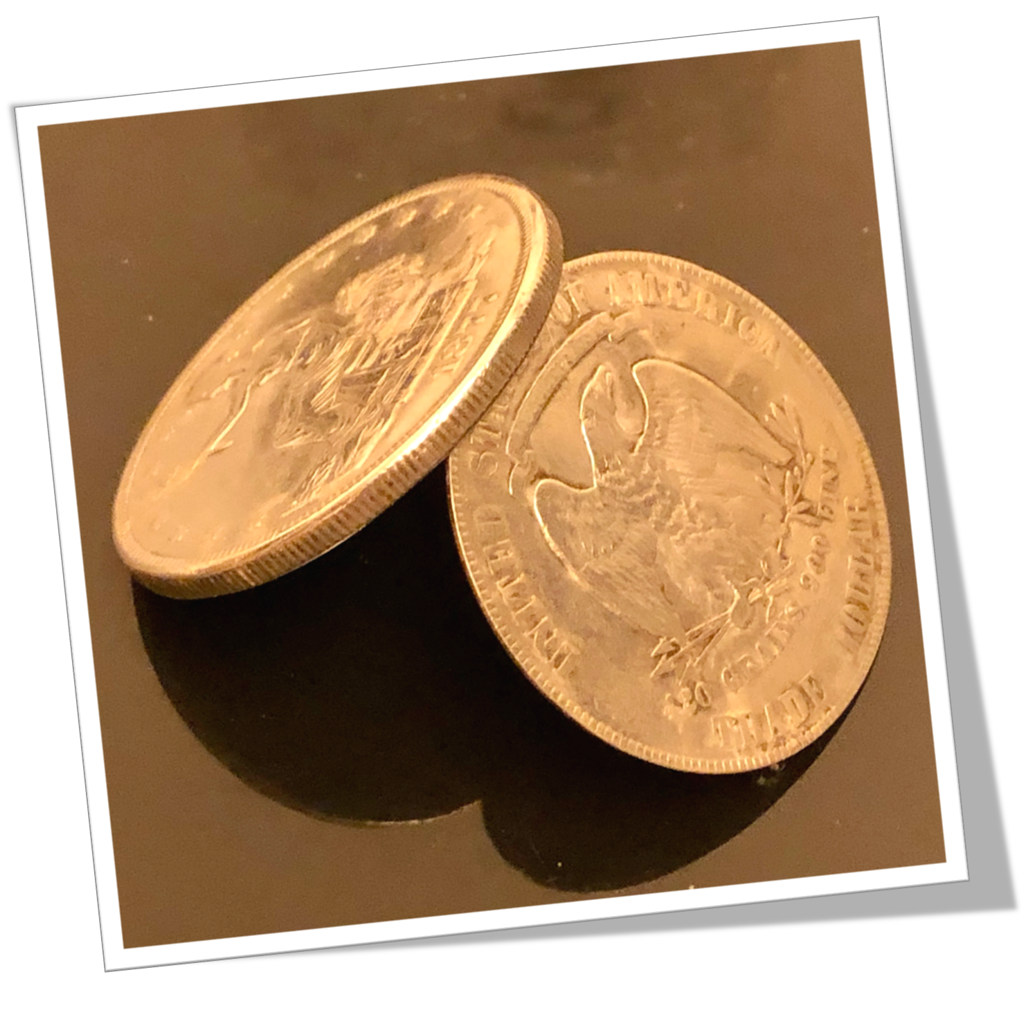 Pièce en argent 900 tranchée et vidée. Trade dollar 1877 USA.