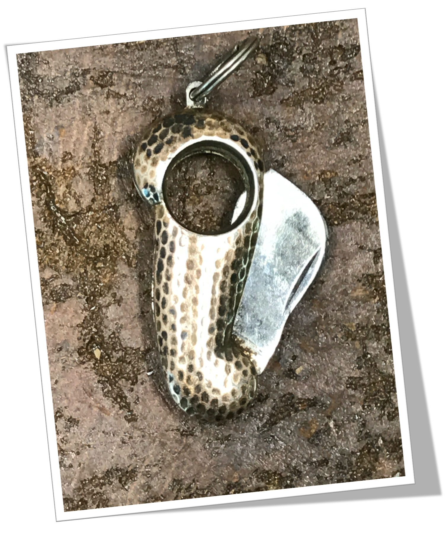 Coupe-Cigare de poche Corne d’abondance à côtes bombées et appliquées en argent 925 niellé. Martelées niellées.Lame guillotine à ressort. Bélière.