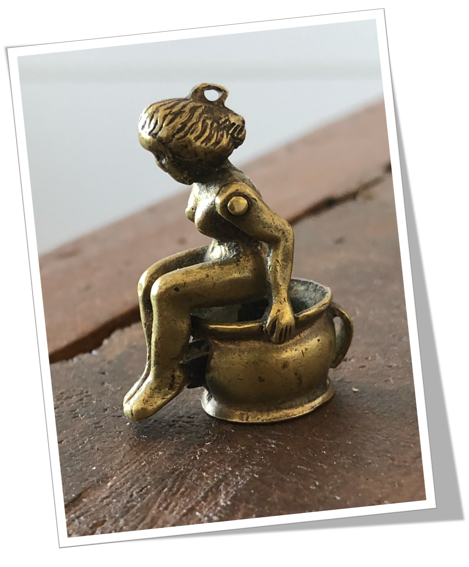Dame sur le pot, moulée et texturée en laiton. De style Novelty Victorien.