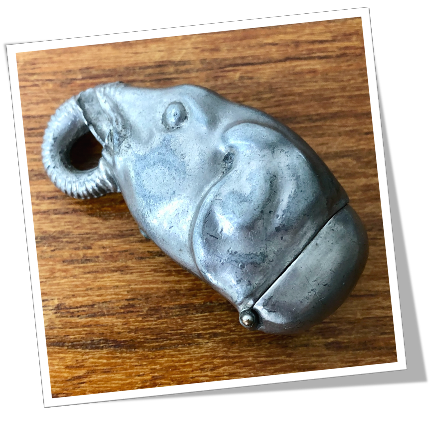 Pyrogène Vesta Case En métal argenté et de style Novelty animalier, moulé et texturé en forme de tête d’éléphant.Clapet 1/5 4/5 en bas du cou. Grattoir plat sur la trompe.