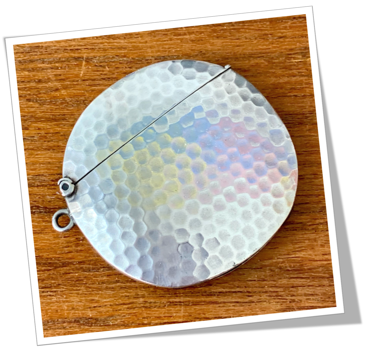 En argent 925 et de forme circulaire. Guillochage martelé façon balle de golf de style Novelty.