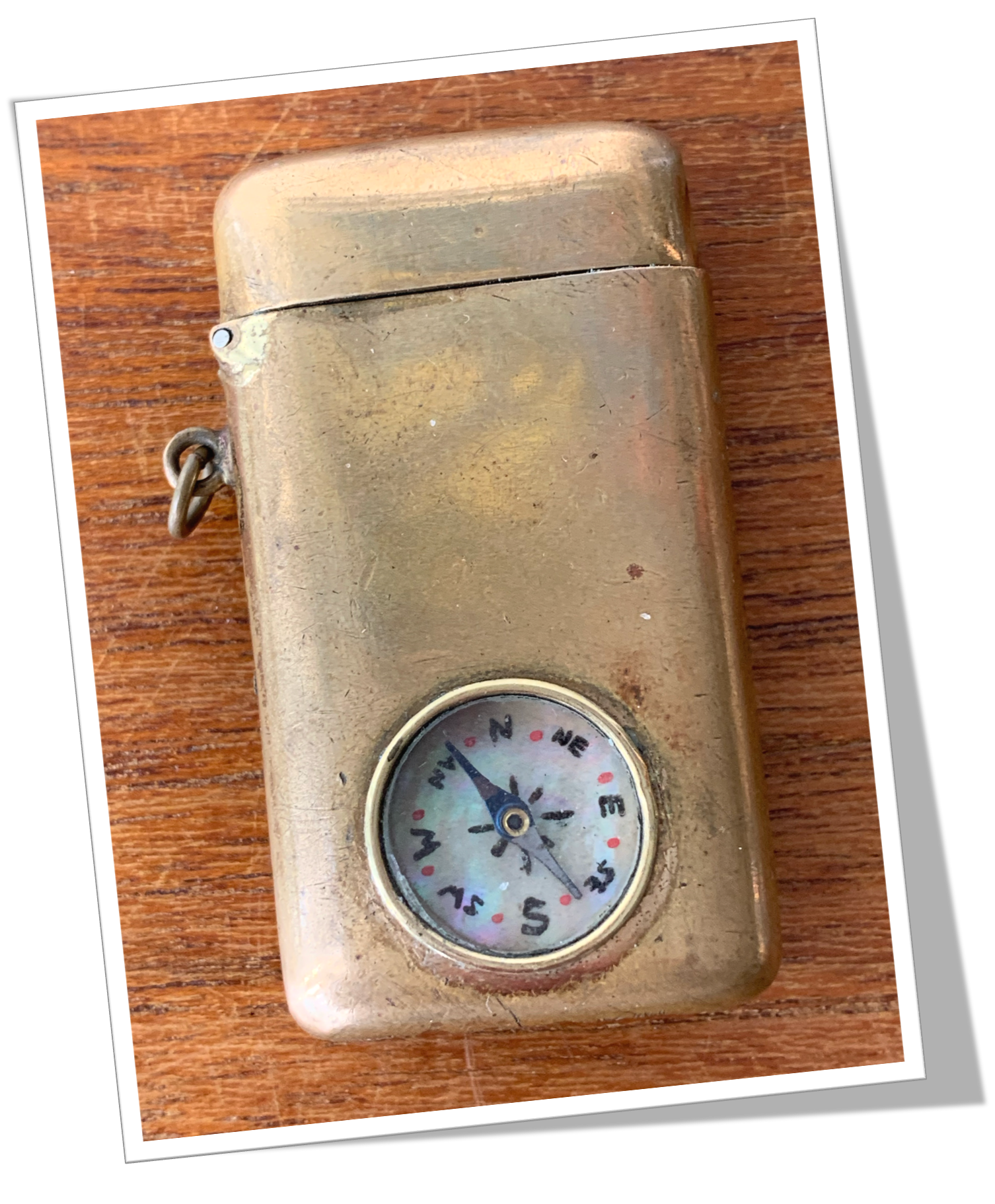 Pyrogène Vesta Case En laiton et de forme rectangulaire, agrémenté au recto d’une boussole.Combiné: Clapet 1/5 4/5 et grattoir plat à la base. Boussole intégrée.