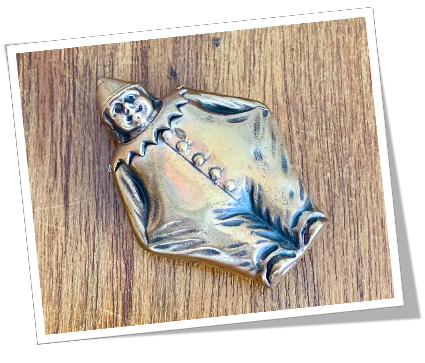 En laiton moulé et texturé, un arlequin se tenant debout, mains dans les poche. Style Novelty tardif.