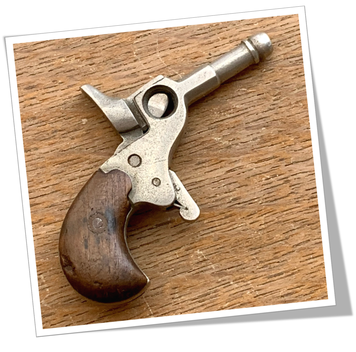 De style Novelty. Pistolet, revolver en métal. Côtes en bois la poignée.
