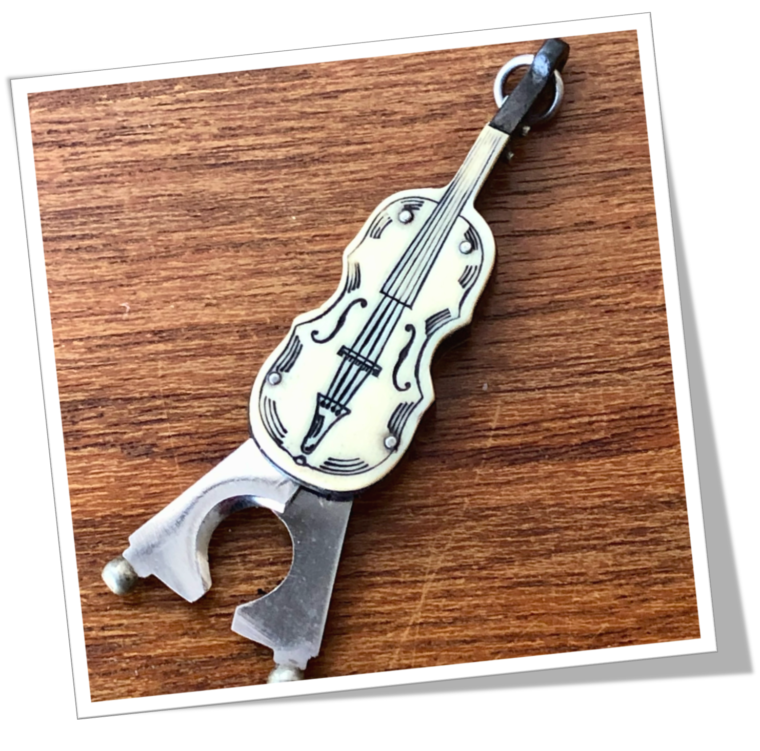 Coupe-Cigare de poche Violon en résine celluloïd. De style Novelty.Cisaille extractible.