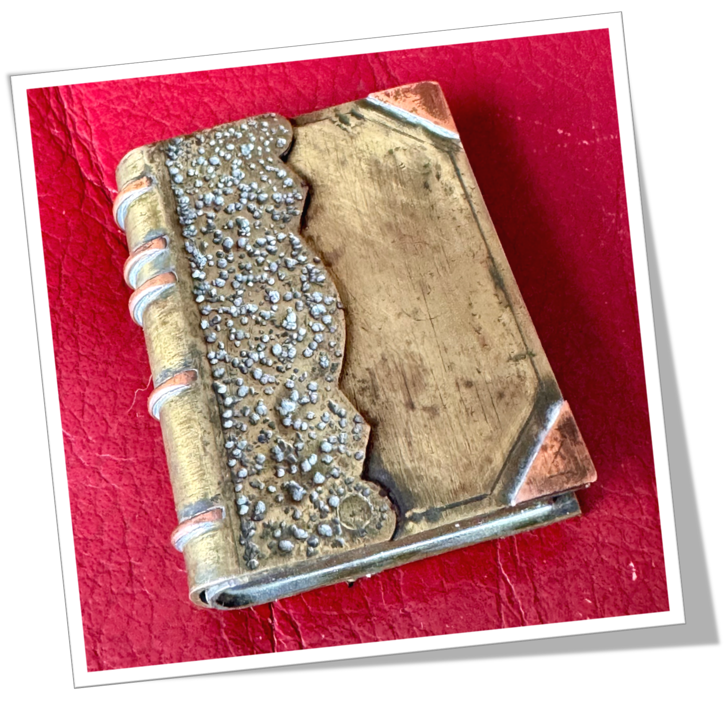 En laiton et en forme de livre ancien. Style Trench-Art.