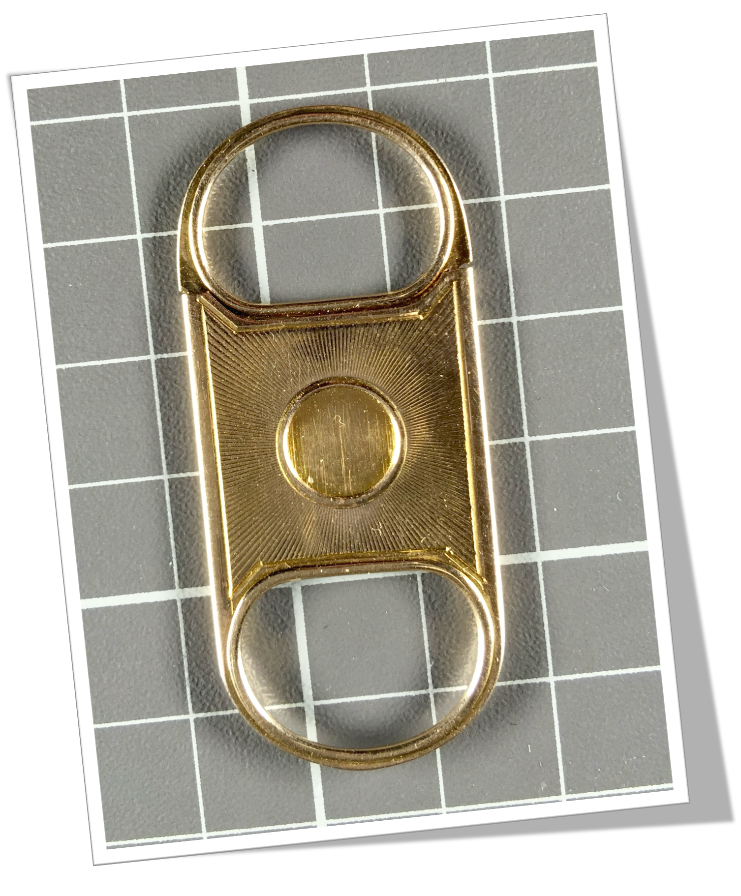 Coupe-Cigare de poche En or 12ct.Guillotine en V à double prises semi-circulaires latérales. Hublot circulaire. 6cm.