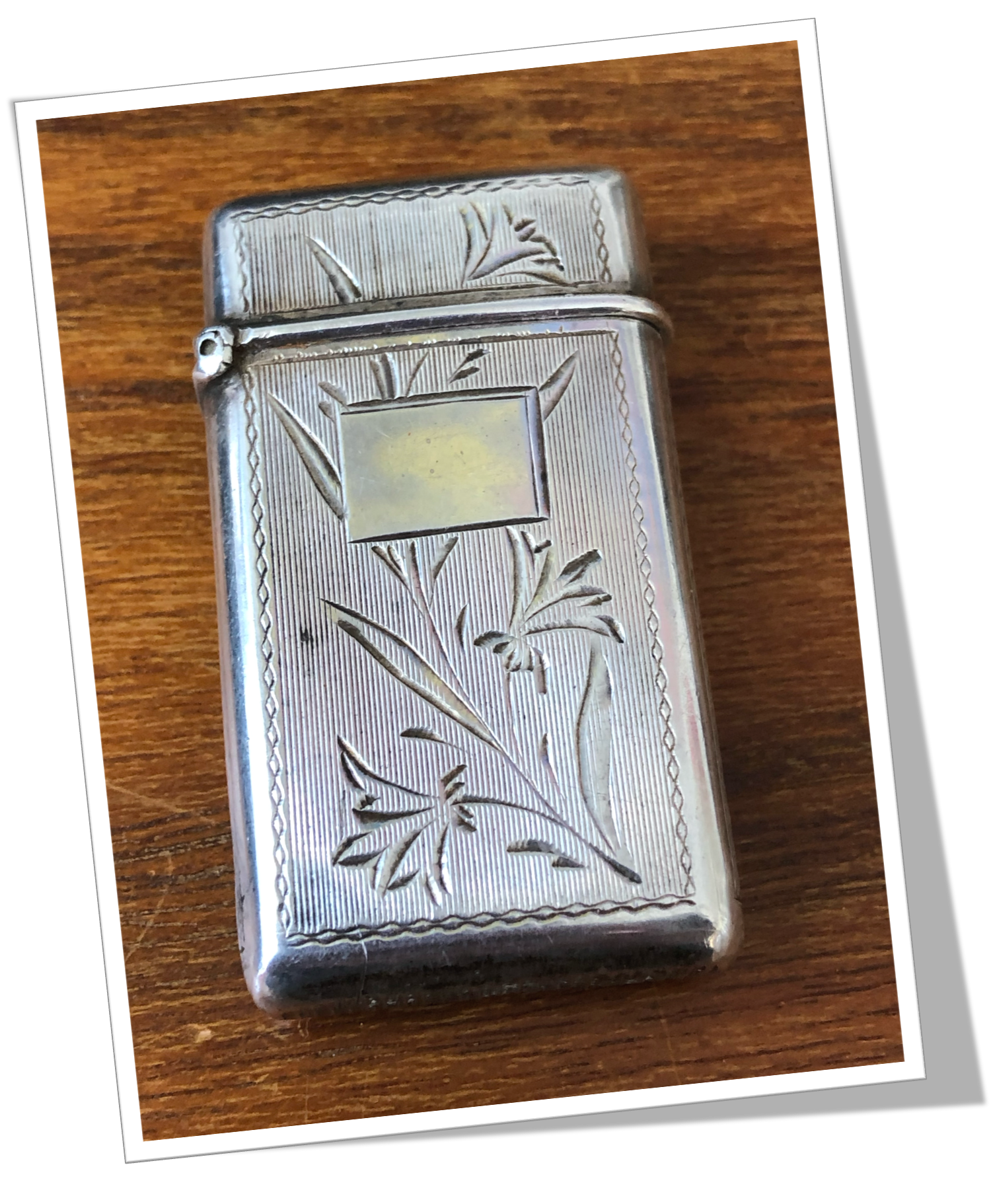 Pyrogène Vesta Case En argent 925 et de forme rectangulaire. Rehaussé au recto d’un guillochis strié avec décor floral, agrémenté d’un cartouche rectangulaire vierge au centre et, au verso d’un guillochis « antique ». Intérieur gilt « vermeil ».Clapet à charnière 1/5 4/5 et grattoir concave à la base.