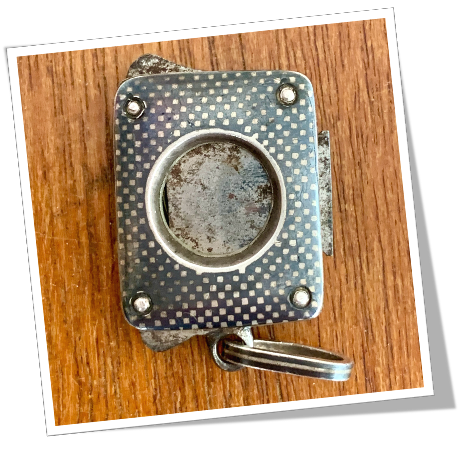 Coupe-Cigare de poche En argent 925 niellé et de forme rectangulaire, faces rehaussées d’un guillochis « carreaux damier ».Guillotine à collerette. Bélière.