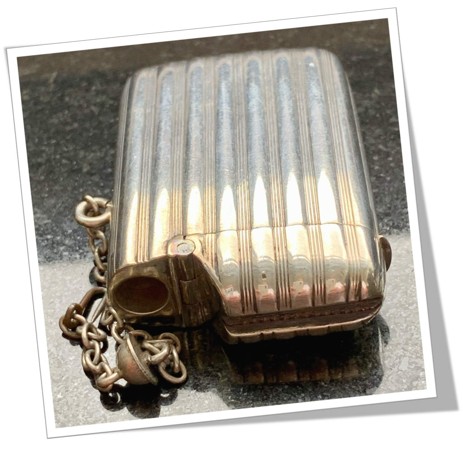 Pyrogène Amadou En argent 925 et de forme rectangulaire, rehaussé d’un guillochis « strié fin » en bandelettes. 30gClapet 1/5 4/5 et crochet à mèche amadou.