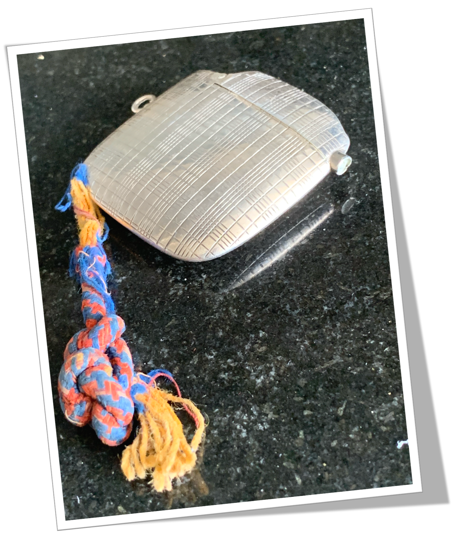 En argent 900 et de forme carré, rehaussé d’un guillochis « damier écossais ». 25,6g.