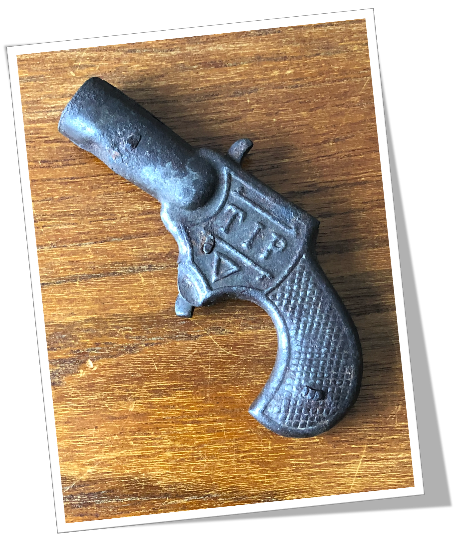 Perce-Cigare de poche Pistolet, revolver de pirate en laiton noirci. Moulé et texturé. Style Novelty tardif.Perce-cigare pique.