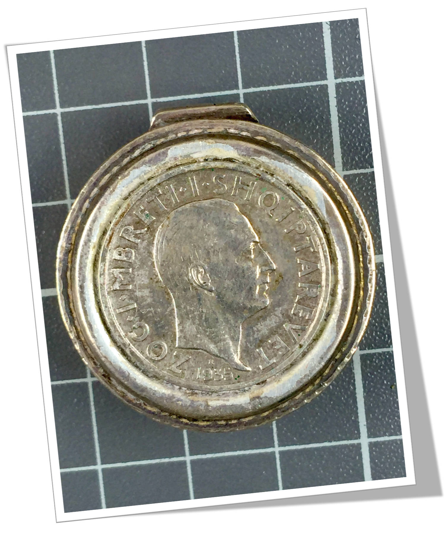 En argent 925. Lisse avec pièce en argent appliquée au recto. Zag I. Albanie.