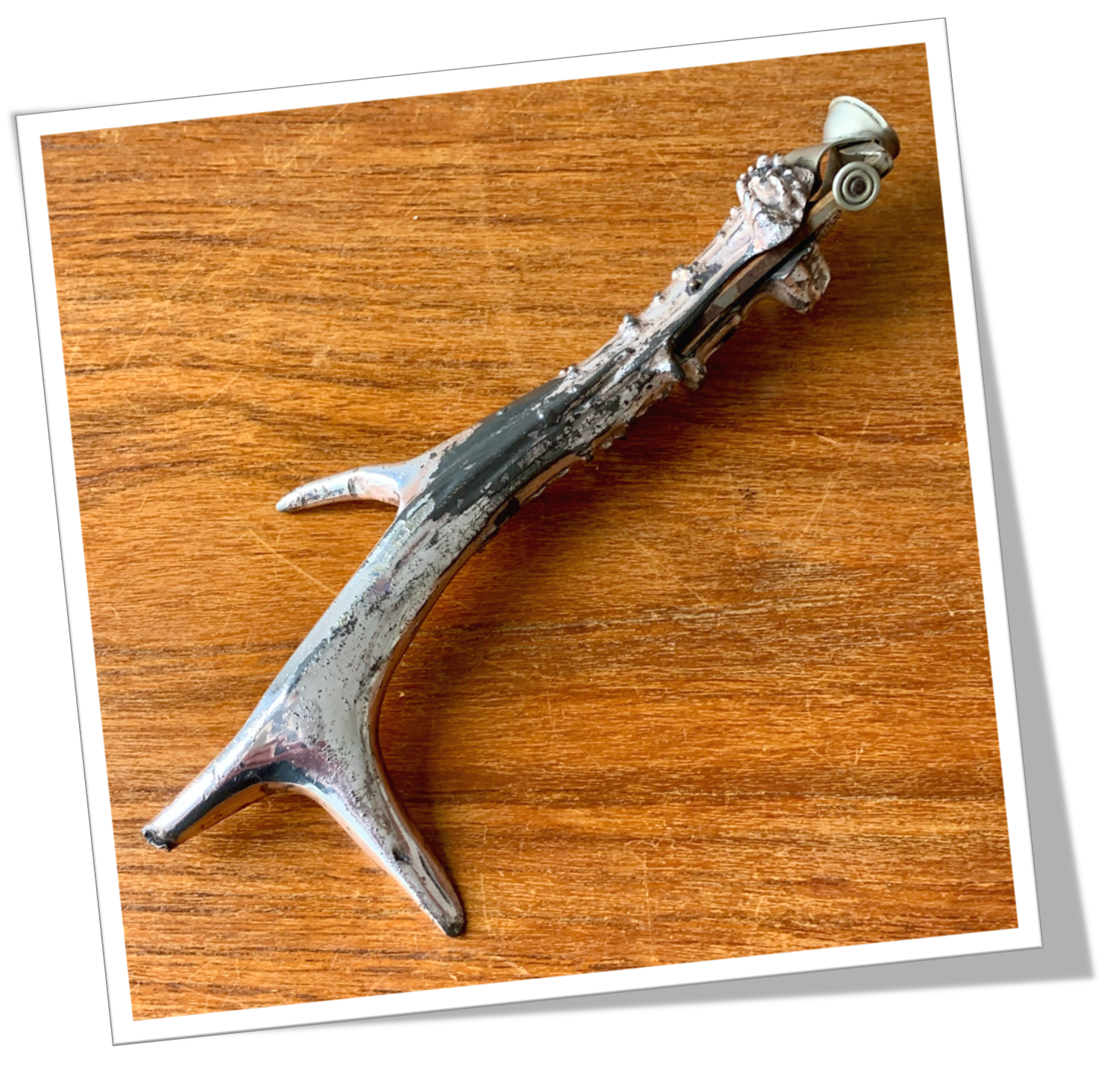 En métal argenté, moulé et texturé en forme de pointe de bois de couronne de cerf.