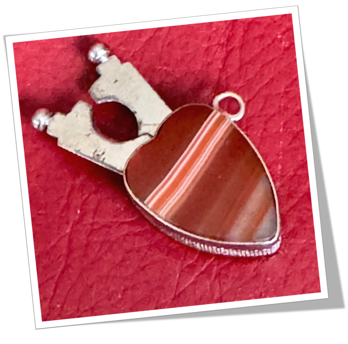 En métal argenté et en forme de cœur à côtes serties en agate.