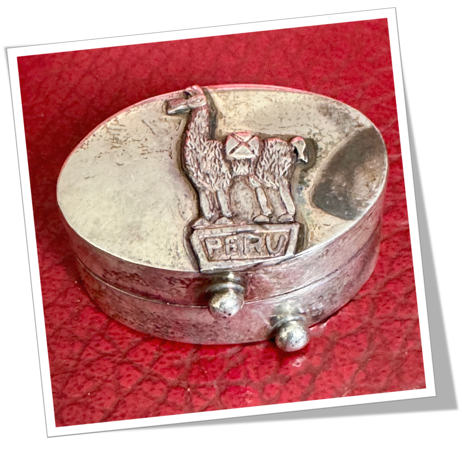 Pilulier En argent 925 et de forme ovoïde. Agrémenté sur son couvercle d’un lama ciselé et appliqué. 7gr.Clapet 1/5 4/5.