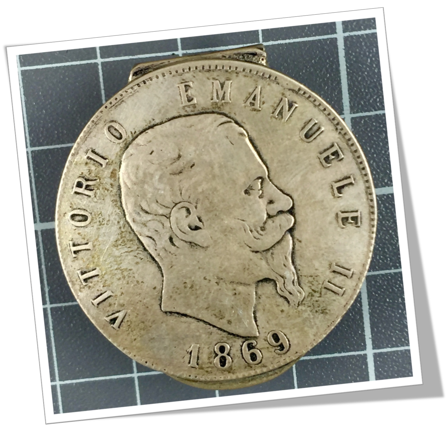 En argent 800. Pièce factice en technique « repoussé ». Vittorio Emanuele II, Italie 1869.