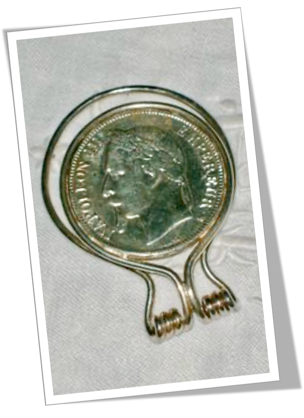 Pince à billets Écu en argent 900 serti. Napoléon III, France 1868.Arceau à ressort.