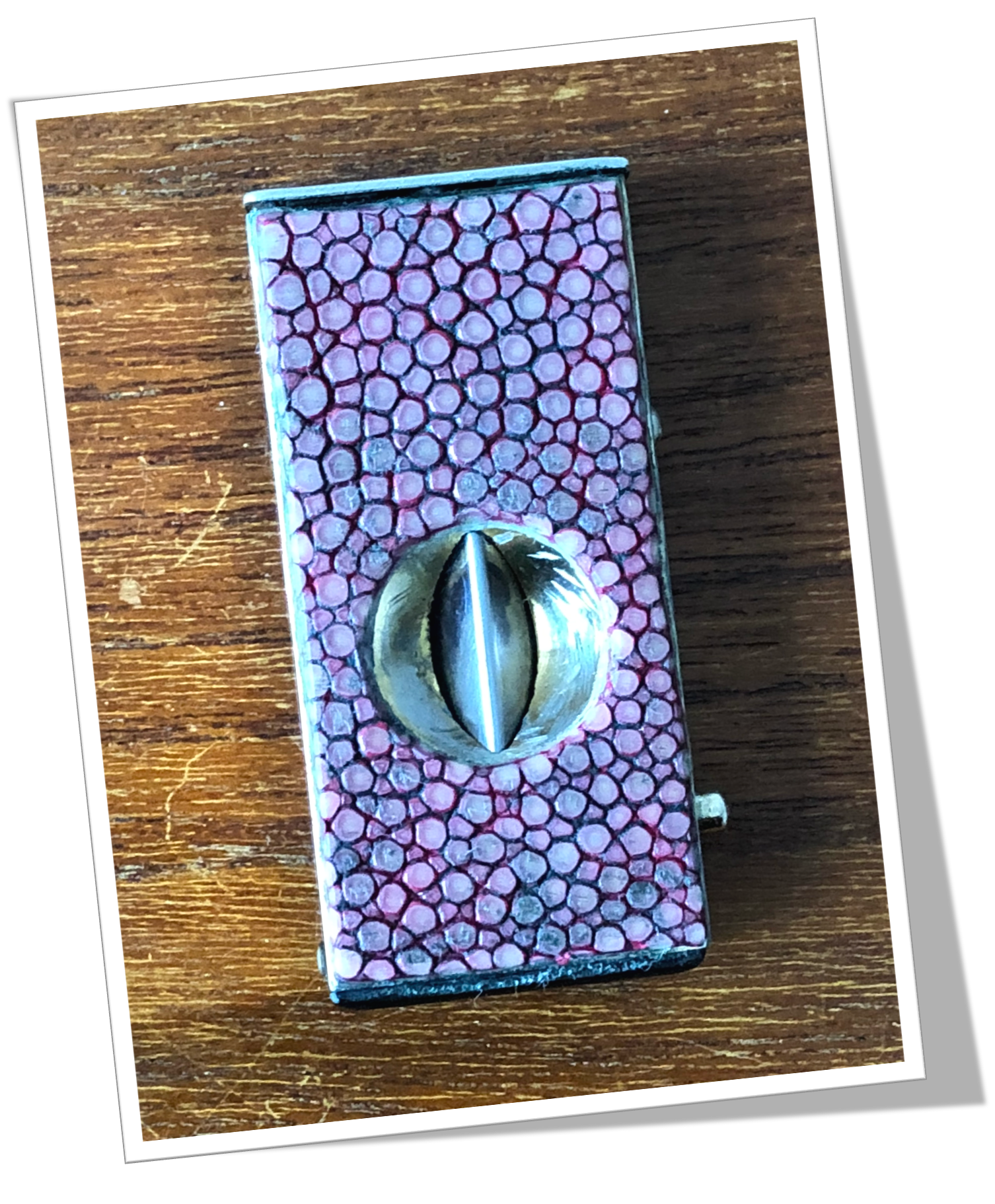 En métal doré et de forme rectangulaire. Faces agrémentées de peau de galuchat appliquées.